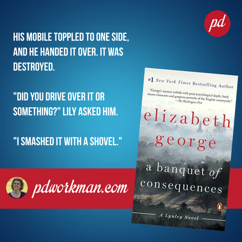 A Banquet of Consequences is book #19 in Elizabeth George’s Inspector Lynley series. I have read a few other books in this series and they are always full of interesting characters with complex backstories, and a good murder you can really dig into. Though they are police procedurals, there is a lot of information given about the characters before the murder, similar to an Agatha Christie like Death on the Nile. You don’t really hear a lot from the police detectives to start with. In a lot of police procedurals you only view the crime through the eyes of the investigator, but that is not the way the Inspector Lynley books are written.