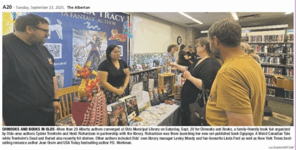 The Chinooks and Books Book Fair in Olds made it into the Albertan. That’s me at the next table over.