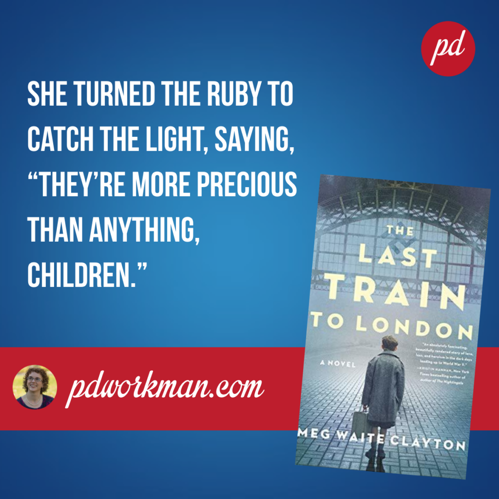 I just finished The Last Train to London. It’s a pretty heart-wrenching book, as you’ll probably guess when you read the description below. It is a fictionalization of Truus Wijsmuller’s (Tante Truus’s) efforts to smuggle Jewish children out of Germany and Austria during WWII. It is a slow build, with no graphic violence and while it is tense, you are not usually on the edge of your seat. But I will tell you, the scenes of the parents saying goodbye to their children as they were put on the train, knowing that they would quite likely never see them again had me pretty choked up.