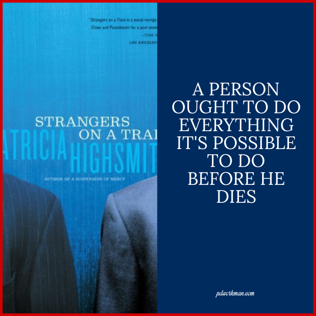 Believe it or not, I have actually never read Strangers on a Train before. I believe I saw the Hitchcock movie, some time ago. Or if not, I have seen enough clips about it to recall it as I am reading the book. I knew the premise of this classic mystery, but it has been interesting, it’s actually quite different than I thought it would be. Rather than being a pure mystery, where there is a detective or some other sleuth trying to solve a murder, it is more of a psychological thriller where you know who the murder is, but are waiting to see how they are going to get caught.