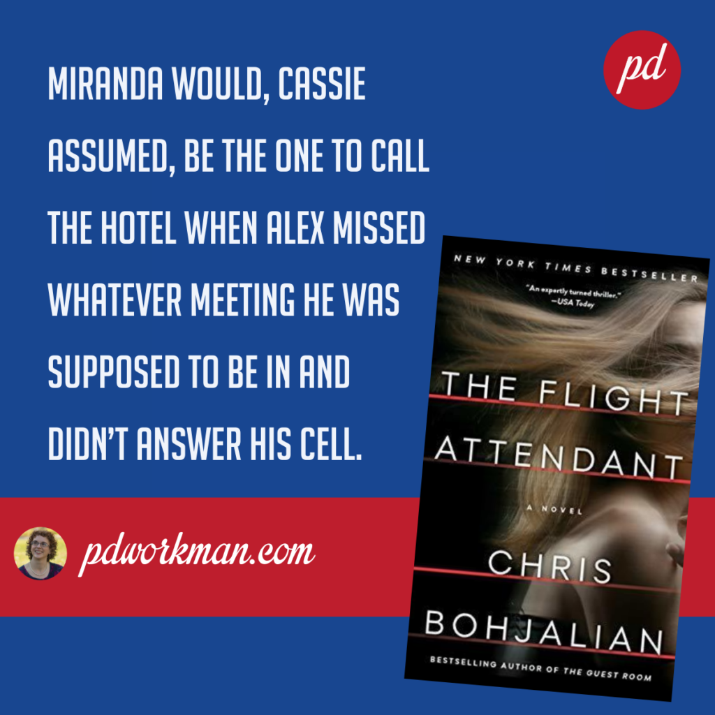 Today I just started reading The Flight Attendant by Chris Bohjalian. I’m not sure what I think of it so far, but it looks like it could be a good read. The protagonist is clearly broken and ha a lot of issues that don’t make her too relatable, at least to start with. I imagine I’ll get to empathize and relate with her more as I get deeper into the book. The premise has lots of potential.