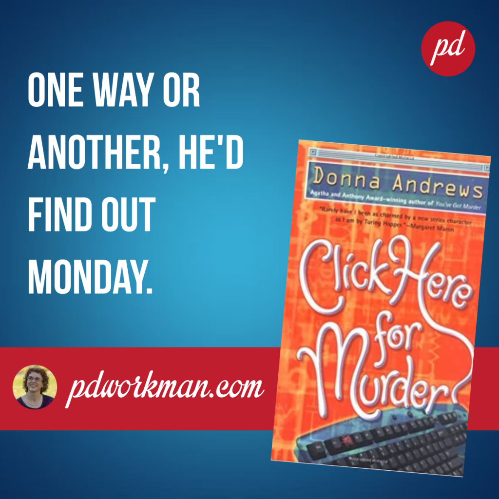 Click Here for Murder by Donna Andrews has been a fun and clever read so far. The main narrator (it has multiple points of view) is an AI personality that has gained sentience. I have not read book one in the Turing Hopper series, but there is enough backstory for me to understand the main points of what has happened prior to this story. I have read some of Donna Andrews’ Meg Langslow series, which is quite good.