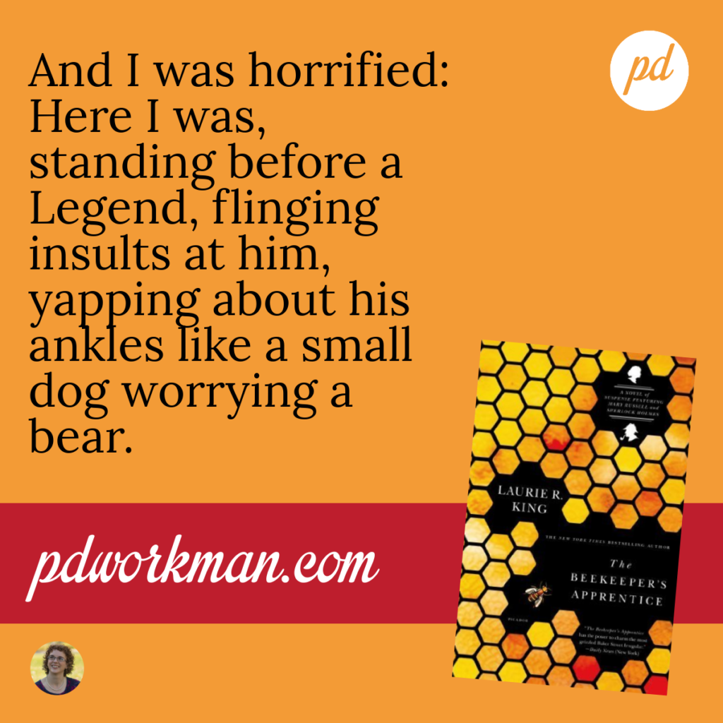 I am about a third of the way into Laurie R. King’s The Murder of Mary Russell, the fourteenth installment in her Mary Russell–Sherlock Holmes series. Though I have not read the other books in the series, it appears that so far this one is deviating from typical plot structure – there has yet to be a murder or any appearance by Sherlock Holmes